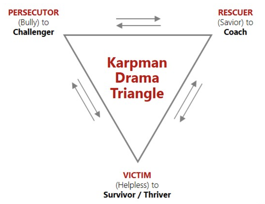 The drama triangle helps me to diagnose when I am falling into negative behaviors at work or home.