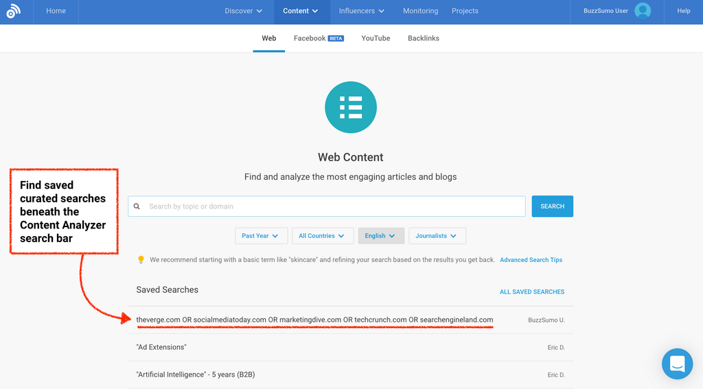 theCLIKK locate this saved search in their bookmarks, but they can also find it beneath the search bar on the Content Analyzer homepage…
