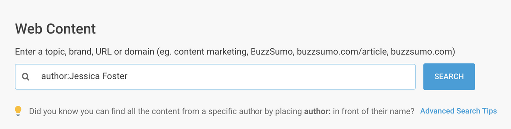| Author: | Search content by author. | author:rand fishkin | To get ideas from headlines written by a specific author. |