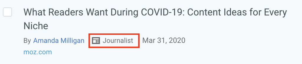 Journalist icons appear next to a publisher's name, if they're listed as a publisher in our Journalist Database.