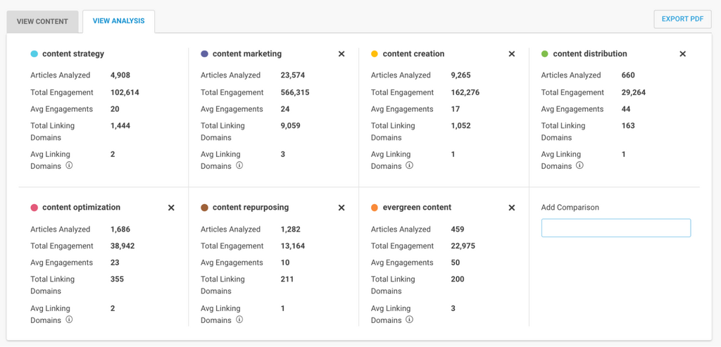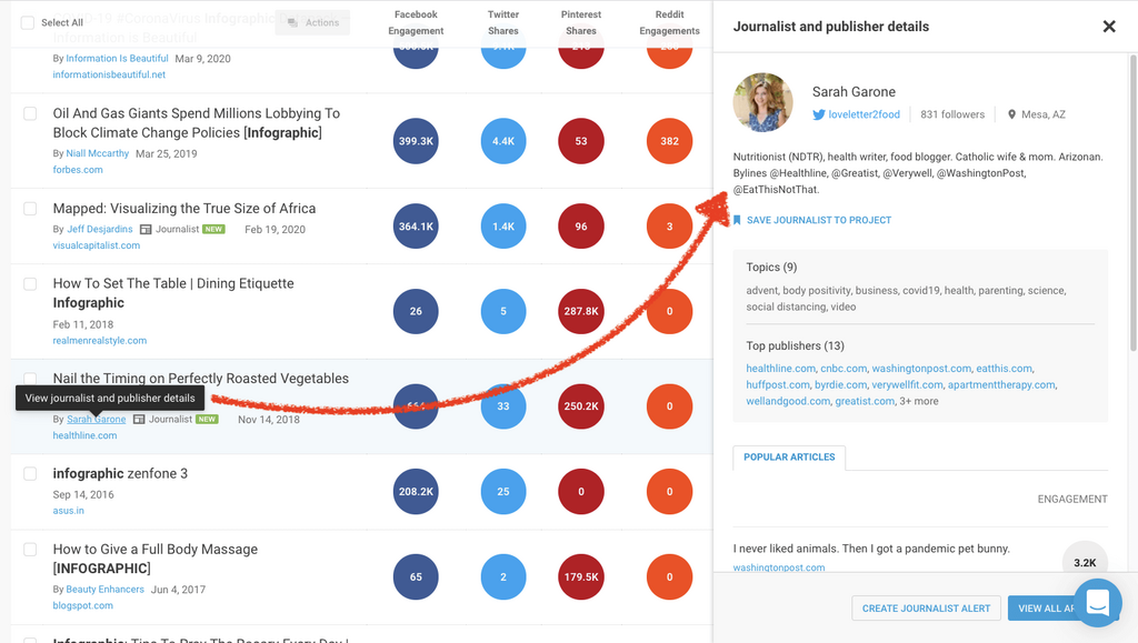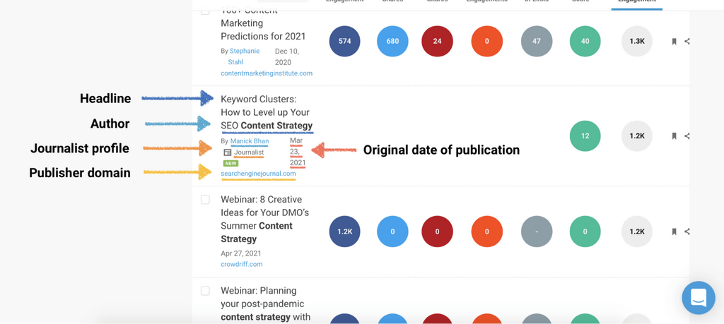 This tool helps you understand the types of articles that are linking to content, and gives you a breakdown of their engagement, so that you can outreach to authors that have the power to push your content furthest.