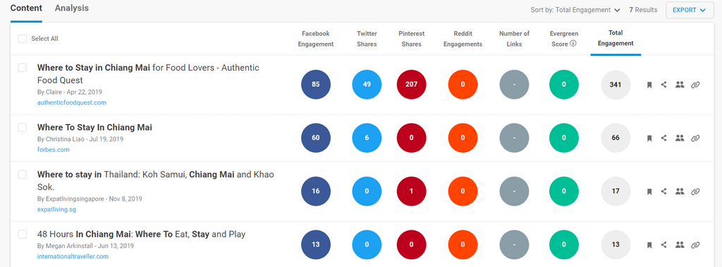 For our purposes here, let’s say you’re running a travel blog for digital nomads and you want to find backlinks for your post about places to stay in Chiang Mai. You could start by typing the keyword “places to stay in Chiang Mai” into Google and looking for sites like yours on the first page of results.