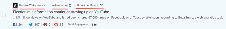 In BuzzSumo, we help you quickly recognize influential sources by including: