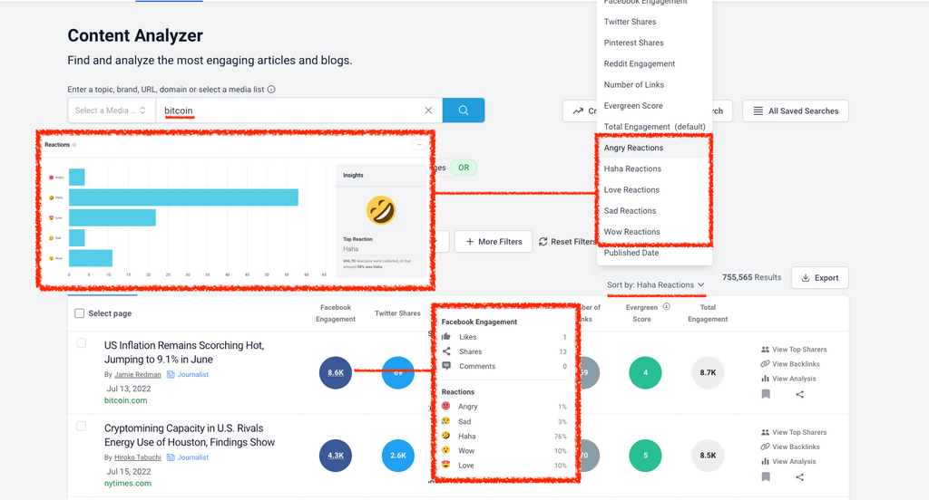 Whether you're sorting, filtering, or comparing, tap into the most emotive topic ideas in the Content Analyzer, and see what headlines are getting a reaction.