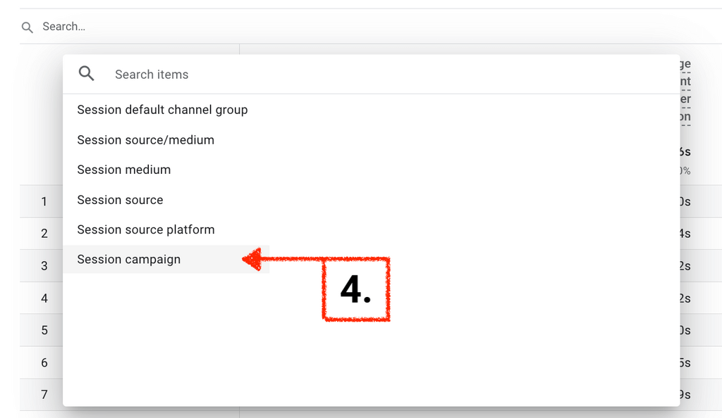 Hit the arrow dropdown next to “Session default channel group” and select “Session campaign”.