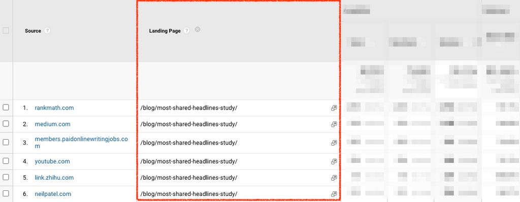 And clicking into that referring domain in UA would reveal the top unique URLs/articles sending that traffic…