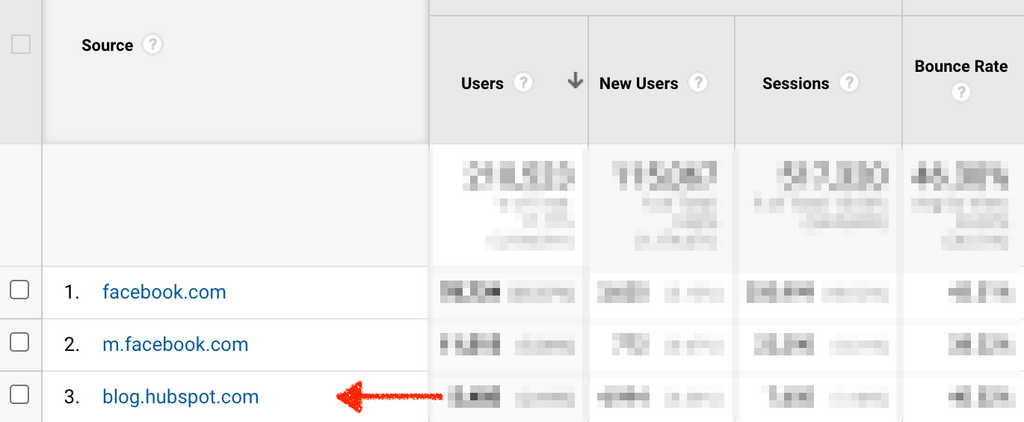 Once in that report, clicking on a domain would reveal the specific URLs driving mentions. For example, one of our top referrers in BuzzSumo came from the Hubspot blog.