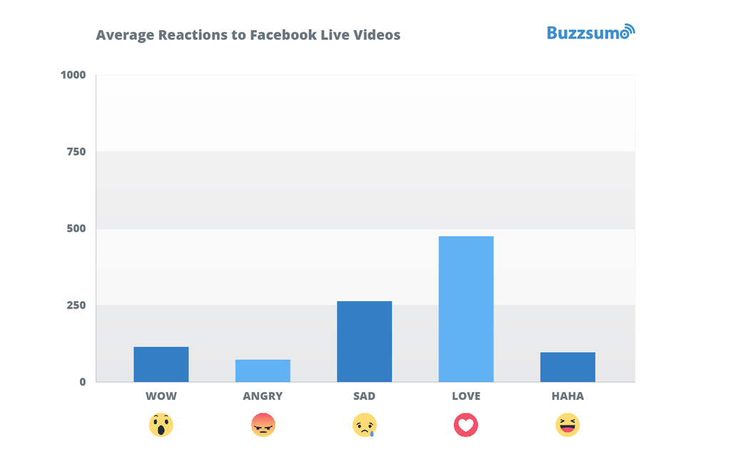 The average reactions to Facebook Live videos were different as we might expect. Typically there were less laughter reactions with love being the top reaction on average. You probably don’t want people laughing at your Facebook Live video, at least in a B2B context…