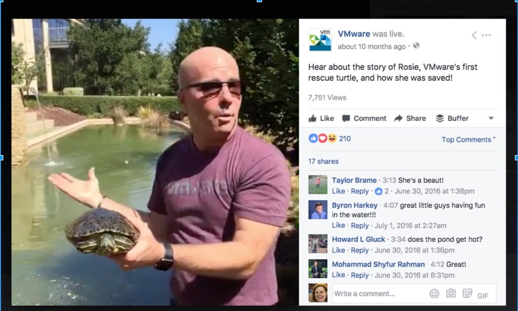 But, even without semi-professional yoga instructors and video crews, employee stories can get a lot of interactions. This video, also from Oracle, features Bruno Borges, principal product manager, with his nine golden retriever puppies. It also proves that puppies have a place on B2B Facebook pages. The Facebook clip is just 30 seconds long.