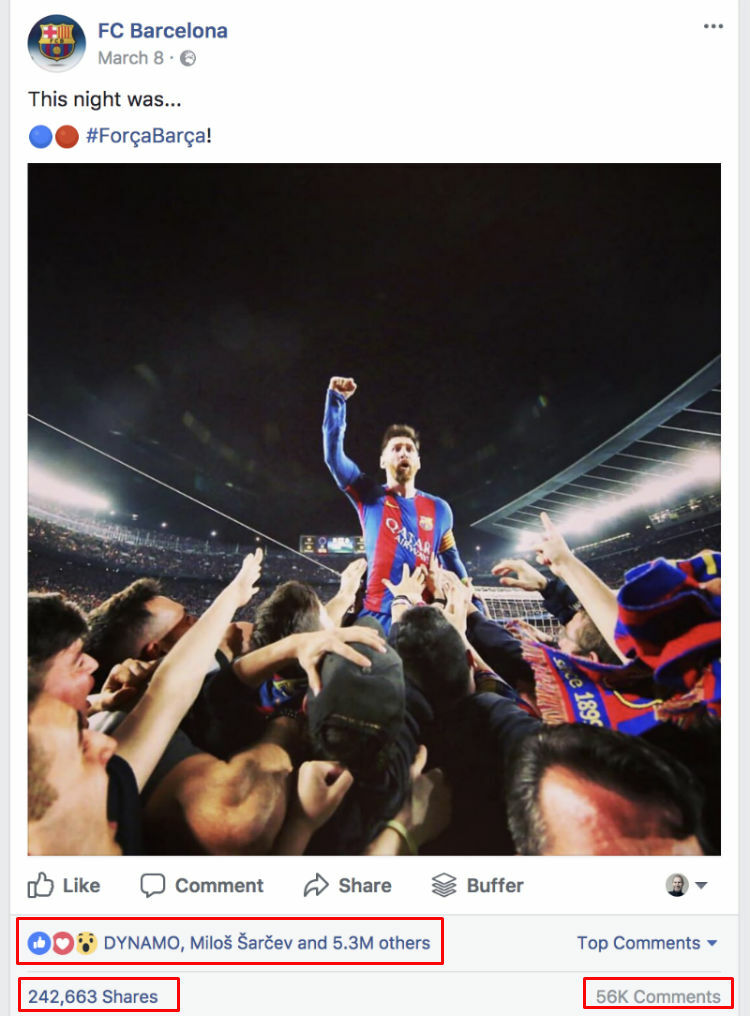 The top Facebook image post of the year was this one from FC Barcelona, which gained over 5.5m shares and likes/reactions. It was also another example of Spanish content in the top 20 Facebook posts of the year.