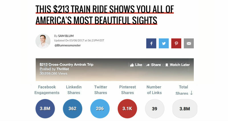 This next article promoting a train ride through America’s most beautiful sites clearly resonated with over 3.8m Facebook engagements.