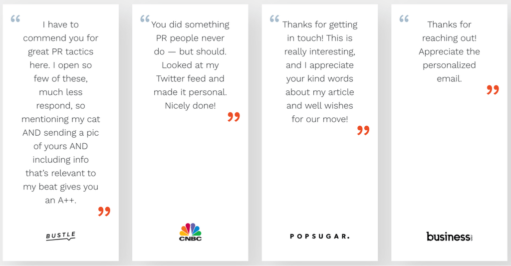 This personalized strategy has resulted in every single person on our team earning compliments on our pitches, from publishers most agencies never even hear back from: