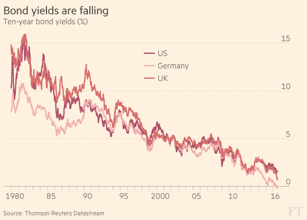 Trends, rising or falling, form the core narrative of many data-driven stories trends. A good example of a site that uses trend data to tell stories is the Financial Times. Here are two recent trends it has highlighted to tell stories about low global interest rates and the burden of an ageing population.
