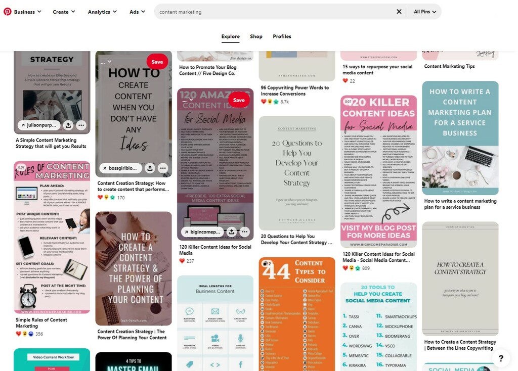 Almost any search on Pinterest will result in at least a few infographics that were created to promote a blog post. This is especially popular in SEO, content marketing, and blogging. These posts on Pinterest can be powerful drivers of traffic to your website and they can also rank in search results.