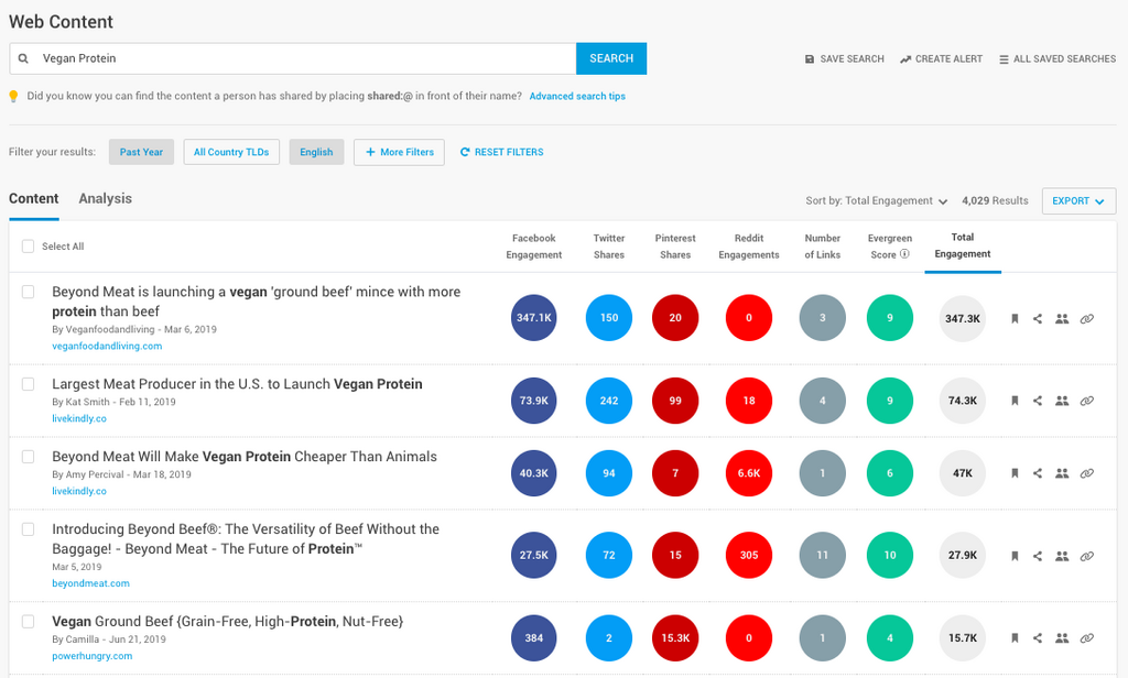 BuzzSumo's Content Analyzer can help here.