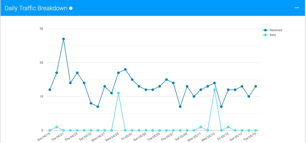 Email Analytics helps you track your and your team’s progress and productivity. It shows how many emails are being sent and how quickly your team responds to emails. It provides daily and weekly email activity reports allowing you to spot areas that need your attention: