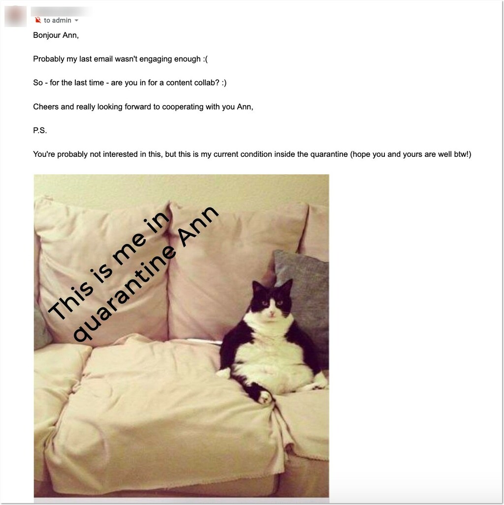 Yet, doing your homework is crucial, especially now that bloggers and journalists are bombarded with PR pitch emails on a daily basis. It is hard to stand out in the crowd of those emails, and personalizing all you can is likely to do the trick.