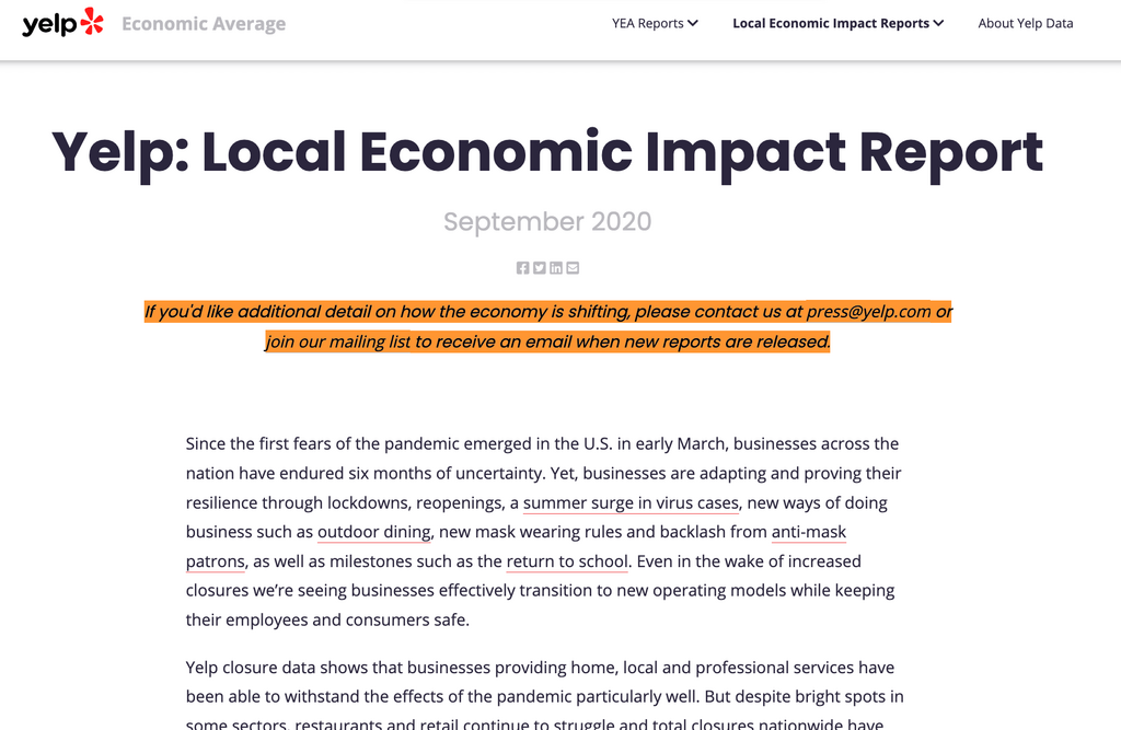 A few years ago, Yelp published their local economic impact report.