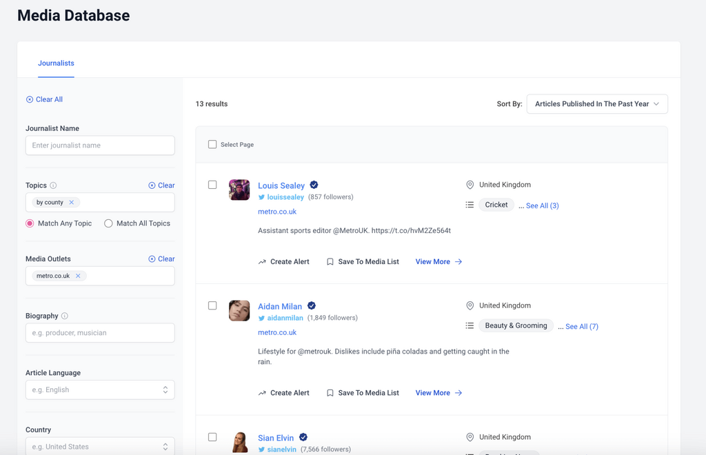 You can find journalists from these publications to pitch using BuzzSumo’s journalist database.