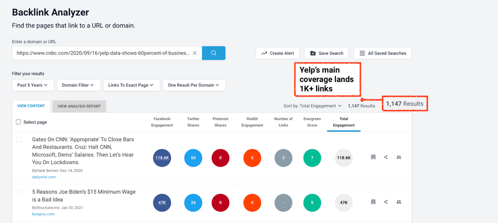 At BuzzSumo, we contextualize all our backlinks with engagement data, to help you prioritize your most engaging coverage.