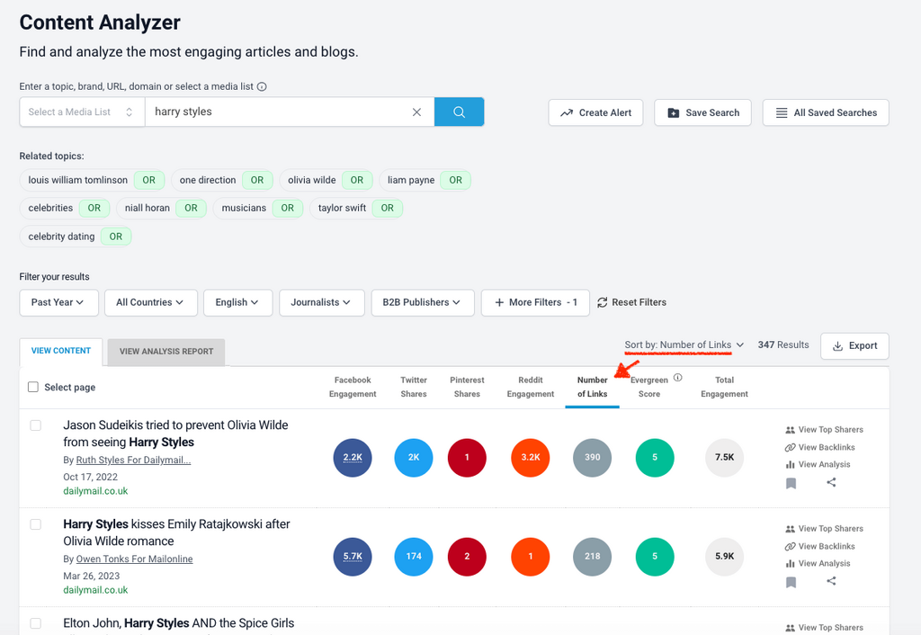 Once you’ve found the top journalists, take them over to BuzzSumo’s Content Analysis Report.