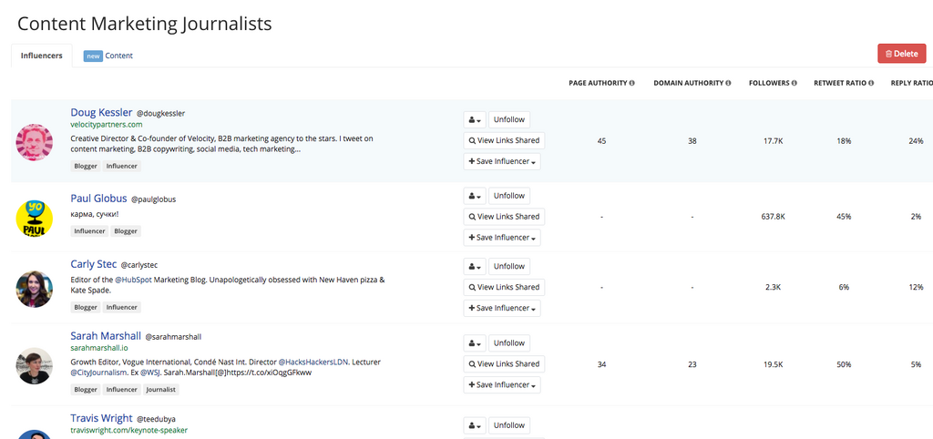 Saving Influencers in a BuzzSumo Outreach list: