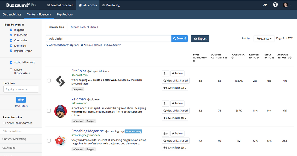 Finding relevant influencers in BuzzSumo to help distribute your content: