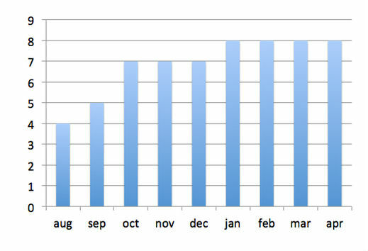 Below is a typical profile of link acquisition by an article over time. The post acquires 50% of its links in the first month. After that initial burst, it tapers off though further links are acquired over the following 4 or 5 months and few new links after this.