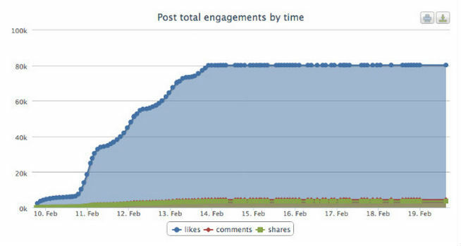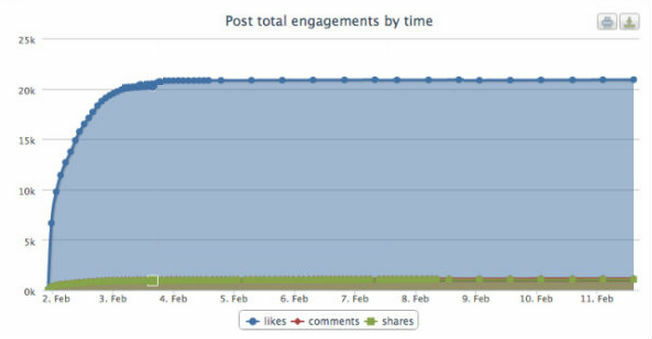 The second chart below shows a slightly different profile where the post has been boosted over 3 days. In both cases though the majority of social interactions still take place within 5 days.